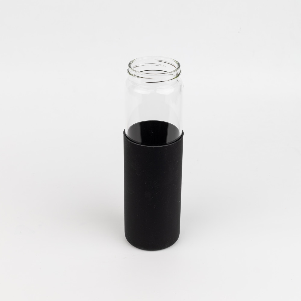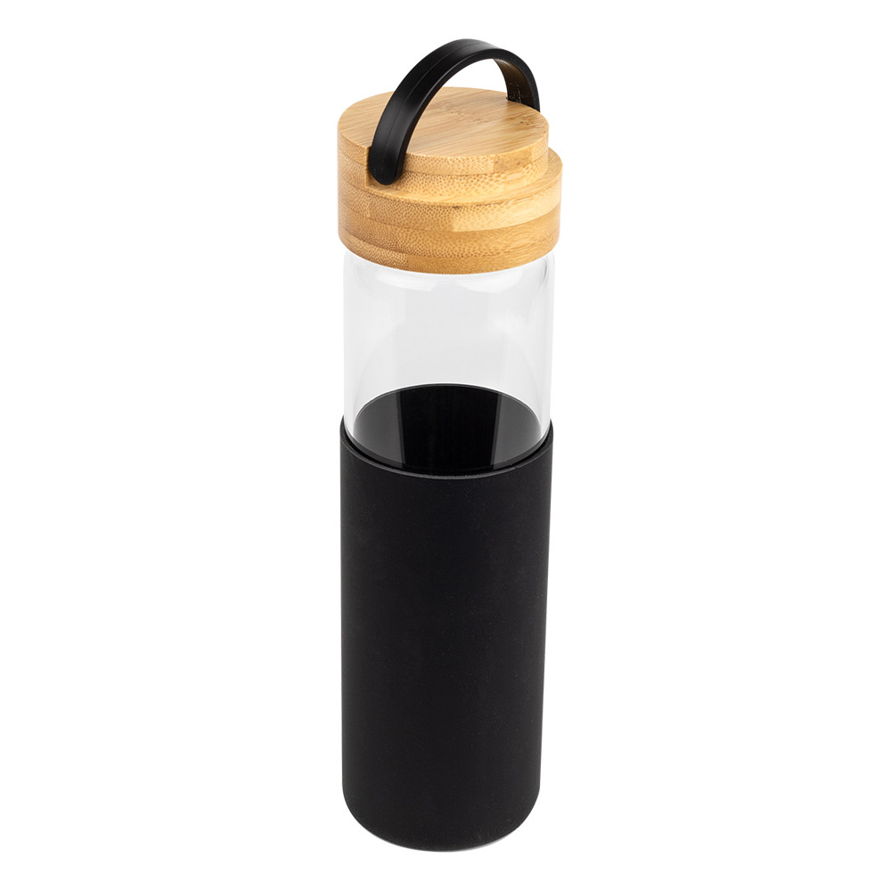 Бутылка стеклянная с силиконовой манжетой и бамбуковой крышкой Glass, Черный