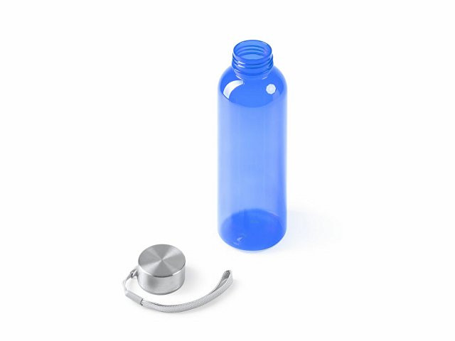 Бутылка из РПЭТ с полупрозрачным цветным корпусом. Емкость 600 мл. Ремешок для переноски в комплекте