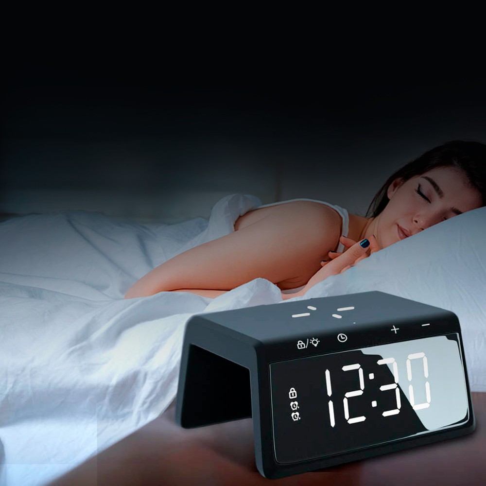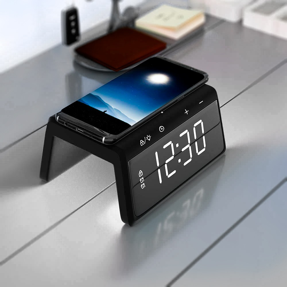Часы Bridge великолепно сочитают функциональность и дизайн! Часы имеют функцию беспроводной зарядки мощностью 10W, а также возможность быстрой зарядки Qi и зарядки дополнительных устройств через порт USB. Отличная яркость дислпея, которая имеет 3 уровня интенсивности свечения! А для поднятия настроения есть функция RGB регулировки света. И в завершение управление при помощи touch-screen кнопок делает эти часы легкими в использовании, современными и удобными. Мощность беспроводной зарядки 10W. Область зарядки смартфона поддерживает все Android/Ios устройства с функцией беспроводной зарядки. Для работы беспроводной зарядки необходимо подключать устройство к сети через адаптер.