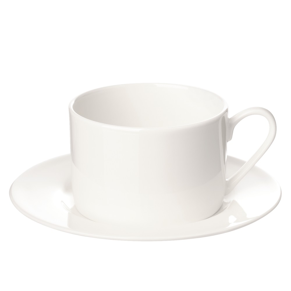 Простая по форме чайная пара «Mokko» изготовлена из костяного фарфора.