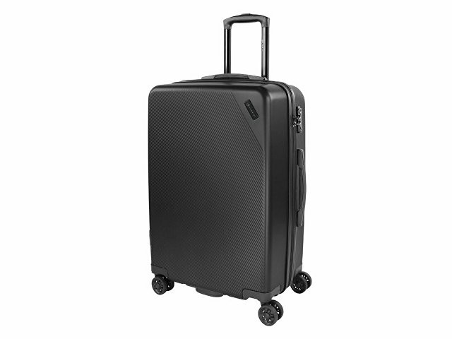 ЧЕМОДАН КАЛЛИСТО | KALLISTO Серия КАЛЛИСТО | KALLISTO воплощает собой нашу страсть к путешествиям. Тонкие диагональные полосы и стильная поверхность с металлическим оттенком подчёркивают непринужденную привлекательность коллекции, представленной в чёрном цвете. Логотип Bugatti аккуратно встроен в металлический шильдик на корпусе. Четыре двойных резиновых колеса просты в управлении и очень удобны. Они могут вращаться на 360°, обеспечивая лёгкий ход по любой поверхности при сохранении полной манёвренности. Лёгкая выдвижная телескопическая ручка удобно фиксируется в нескольких положениях. Замок TSA с трехзначным кодом надёжно защищает содержимое багажа от несанкционированного доступа, а дополнительная ручка на дне корпуса облегчает загрузку и выгрузку чемодана. Продуманная концепция больших отделений с внутренней перегородкой на молнии позволяет максимально практично использовать внутреннее пространство. СВОЙСТВА: Внутренняя организация: основное отделение на молнии с 2 отсеками, сетчатой перегородкой с карманом на молнии, карманом на молнии и 2 фиксирующими ремнями Внешняя организация: телескопическая ручка, кодовый замок TSA, 4 двойных колеса, боковая ручка, ручка на дне Размер: 44,5 x 26 x 63,5 см Объём: 64,88 л Вес: 3,60 кг Материал: АБС-пластик