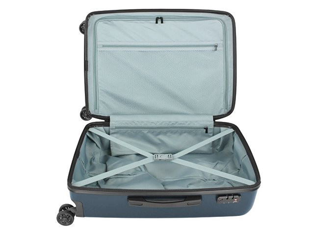 ЧЕМОДАН КАЛЛИСТО | KALLISTO Серия КАЛЛИСТО | KALLISTO воплощает собой нашу страсть к путешествиям. Тонкие диагональные полосы и стильная поверхность с металлическим оттенком подчёркивают непринужденную привлекательность коллекции, представленной в чёрном и тёмно-синем цветах. Логотип Bugatti аккуратно встроен в металлический шильдик на корпусе. Четыре двойных резиновых колеса просты в управлении и очень удобны. Они могут вращаться на 360°, обеспечивая лёгкий ход по любой поверхности при сохранении полной манёвренности. Лёгкая выдвижная телескопическая ручка удобно фиксируется в нескольких положениях. Замок TSA с трехзначным кодом надёжно защищает содержимое багажа от несанкционированного доступа, а дополнительная ручка на дне корпуса облегчает загрузку и выгрузку чемодана. Продуманная концепция больших отделений с внутренней перегородкой на молнии позволяет максимально практично использовать внутреннее пространство. СВОЙСТВА: Внутренняя организация: основное отделение на молнии с 2 отсеками, сетчатой перегородкой с карманом на молнии, карманом на молнии и 2 фиксирующими ремнями Внешняя организация: телескопическая ручка, кодовый замок TSA, 4 двойных колеса, боковая ручка, ручка на дне Размер: 44,5 x 26 x 63,5 см Объём: 64,88 л Вес: 3,60 кг Материал: АБС-пластик