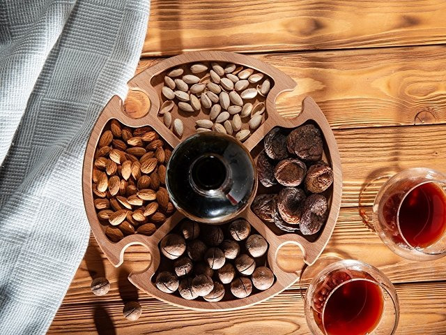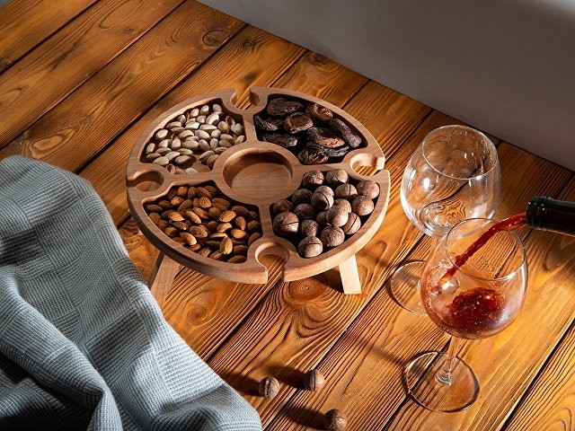Деревянный столик на складных ножках может быть использован как во время пикников на открытом воздухе, так и дома, где его можно использовать прямо на полу. Столик позволяет подать 4 вида различных закусок, не смешивая их, благодаря четырем сепарированным секциям, в которые можно поместить ягоды, орехи и другие снеки, желательно, сухие либо подающиеся в масле (оливки, маслины). Четыре держателя для бокала особенно актуальны во время отдыха на природе, где каждый участник пикника обязательно оценит возможность зафиксировать посуду для вина. Помимо функциональности столика не можем не отметить и его эстетичность, которая позволяет изящно преподнести вино и снеки к нему. - 4 вместительных отделения для закусок - 4 держателя для бокалов - натуральный бук, обработанный минеральным пищевым маслом - удобные складные ножки - для приятных вечеров на природе и дома Натуральный бук, из которого выполнен столик, как и любое дерево, требует ухода, который существенно продлит ему жизнь и позволит радовать своего обладателя в течение многих лет. Пропитывание пищевым маслом (растительное, льняное и т.д.) раз в один-два месяца поможет сохранять свежий вид изделия. Рекомендации по использованию: - не рекомендуется использовать в посудомоечной машине, микроволновой печи, замачивать в раковине с водой - не использовать агрессивные моющие средства - использовать мягкую губку для очищения - вытирать насухо после мытья - транспортировать изделия при температурном режиме от +5°C до +20°C - хранить в помещениях с влажностью до 65-70% - не подвергать прямым солнечным лучам - не подвергать нагреву - хранить при температуре от +5°C до +20°C - не оставлять на морозе от -10°C на более чем 6 часов