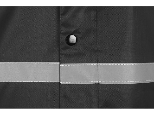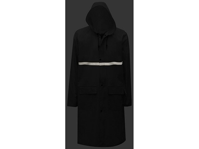 Длинный дождевик выполнен из полиэстера с водоотталкивающей пропиткой. Застегивается на молнию, поверх которой — планка на кнопках, что дополнительно защищает от ветра и промокания. Посадку капюшона можно регулировать при помощи шнурка, ширина рукава регулируется кнопкой. Светоотражающая тесьма на груди и спине делает человека в плаще заметным даже в темное время суток. Вместительные накладные карманы защищены сверху клапаном. Дополнительная проклейка швов дождевика обеспечивает большую степень водонепроницаемости. - водонепроницаемость обеспечивается водоотталкивающей пропиткой материала и дополнительной проклейкой швов - светоотражающие элементы делают человека заметным в темное время суток - вместительные накладные карманы