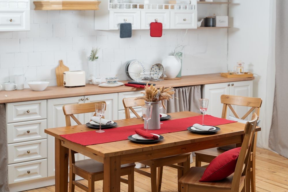 Износостойкая ткань, имитирующая лен, обработана пропиткой от грязи и воды, что делает ее применение для кухни и дома практичным, а уход — легким.