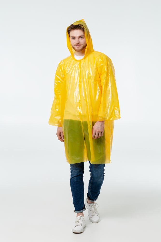 Дождевик-плащ с капюшоном и длинными рукавами из полиэтилена высокого давления (ПВД).