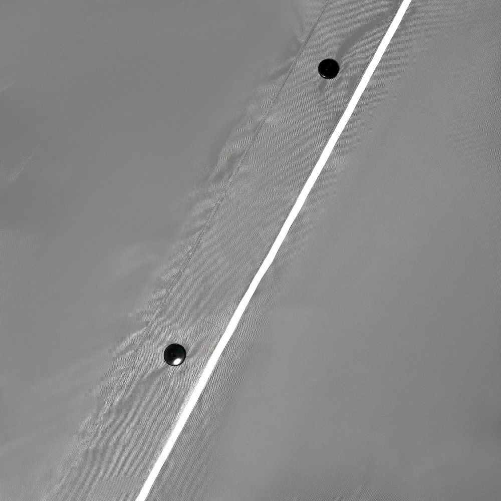 Плащ-дождевик из ткани оксфорд на кнопках с капюшоном. Световозвращающие элементы на рукавах и планке позволяют быть замеченным в темное время суток.