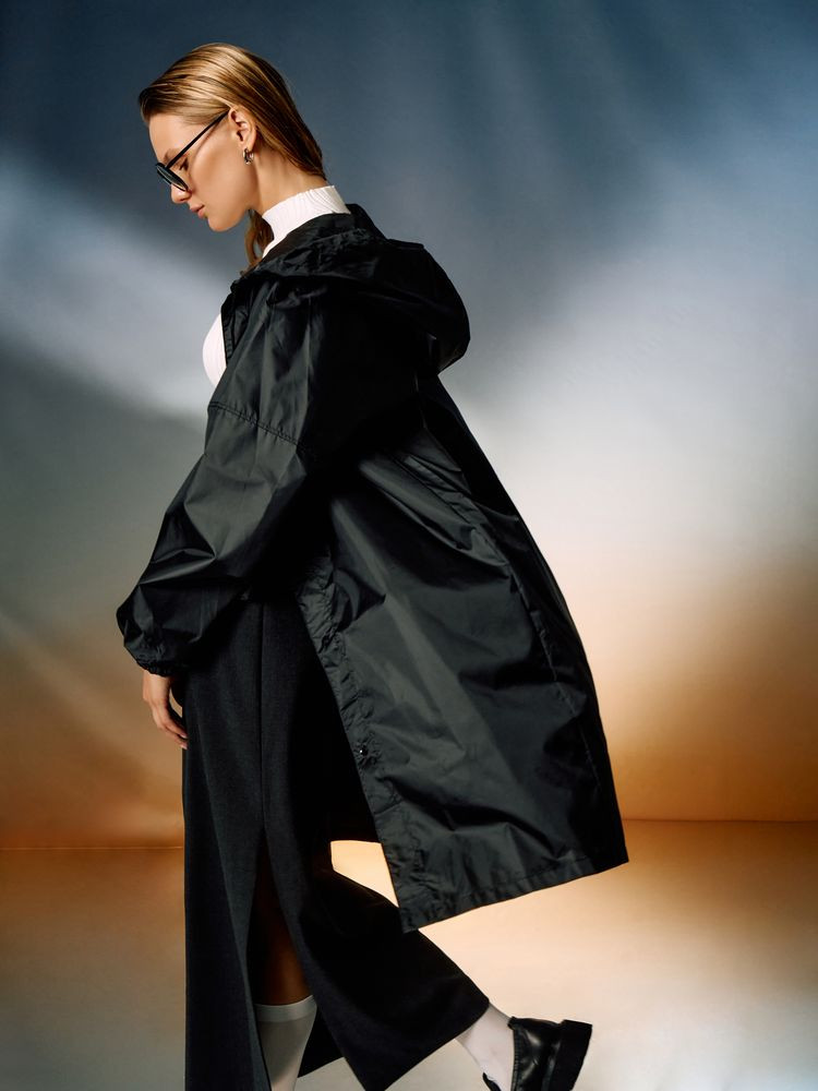 На Rainman получится нанести более яркое и четкое изображение с тонкими линиями, ведь переплетение нитей в ткани едва заметно. Фурнитура в цвет изделия удержит все внимание вокруг вашего маркетингового сообщения.Плащ-дождевик из ткани таффета на кнопках с капюшоном.