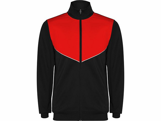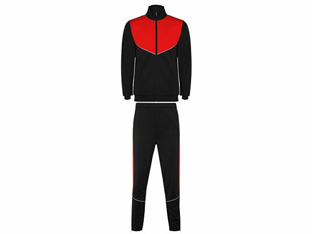 Спортивный костюм из облегченного и эластичного материала. - куртка с контрастными вставками и кантами - высокий воротник с контрастами строчками - центральная молния - боковые карманы - риб 2х2 на манжетах и низу - контрастные боковые части с кантами - молнии по низу - брюки на эластичном поясе со шнурками