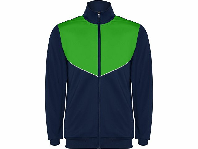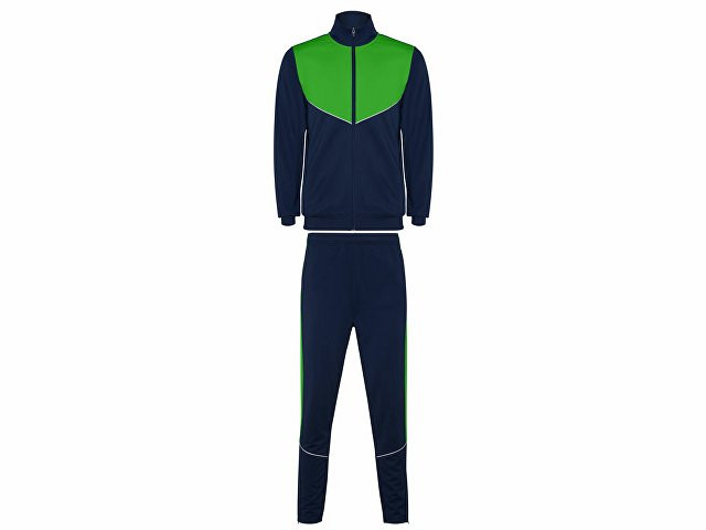 Спортивный костюм из облегченного и эластичного материала. - куртка с контрастными вставками и кантами - высокий воротник с контрастами строчками - центральная молния - боковые карманы - риб 2х2 на манжетах и низу - контрастные боковые части с кантами - молнии по низу - брюки на эластичном поясе со шнурками