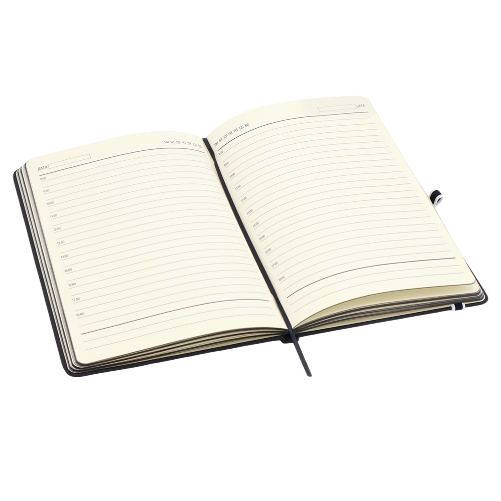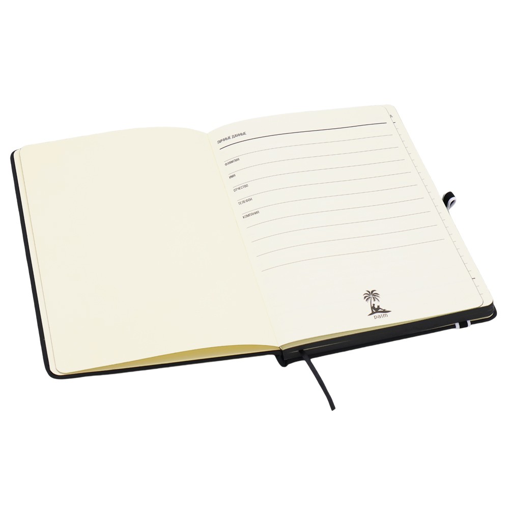 Ежедневник Sir Lewis — выполнен в твердой обложке. Имеет удобную, широкую резинку (1 см.) и держатель для ручки с ярким акцентом. Закладка и край — также в черном цвете. В начале ежедневника страничка с личными данными. Тактильный на ощупь, его не хочется отпускать! Только вы, ваши мысли и PALM™. Блок внутренних страниц в линейку. Количество листов - 96.