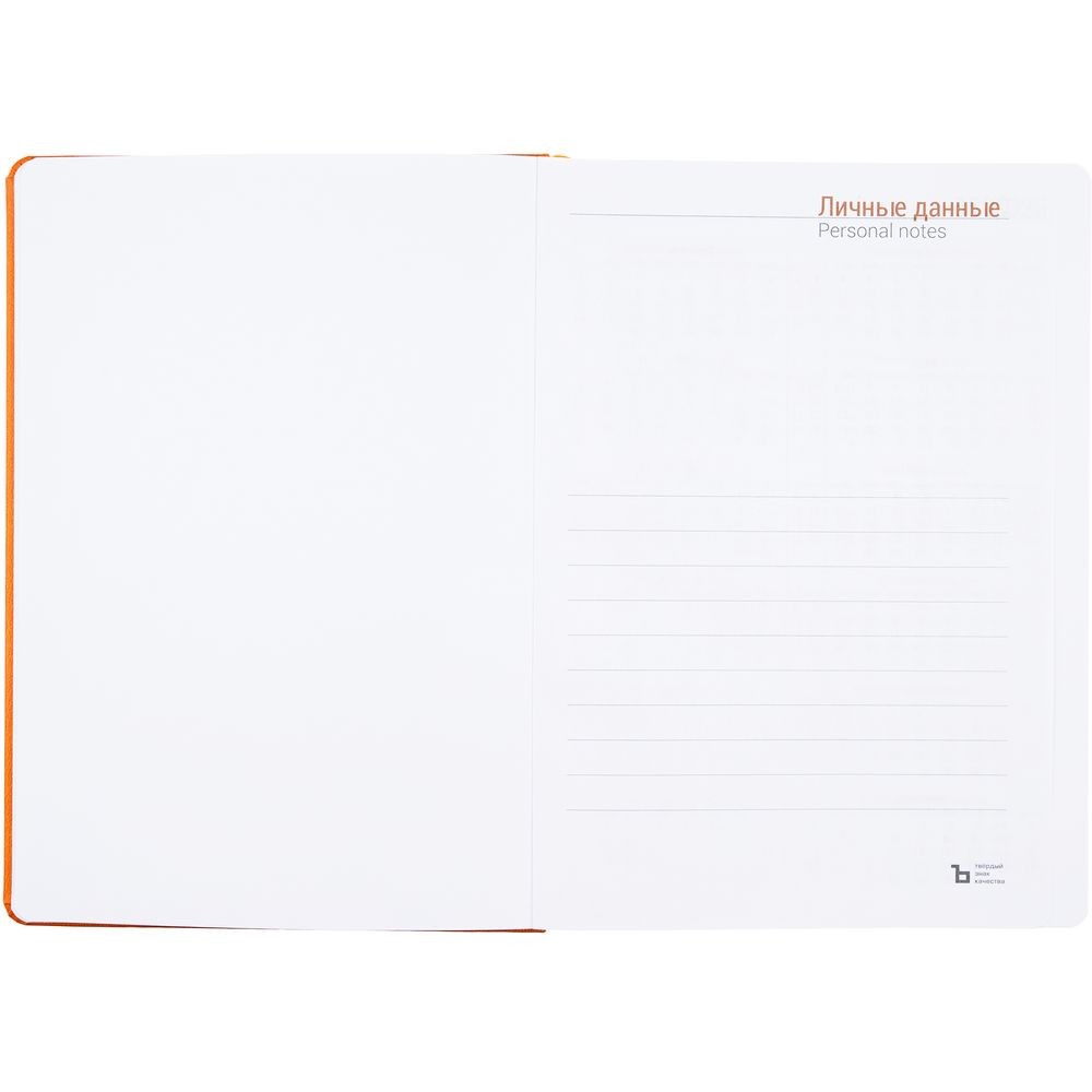 Ежедневник с твердой обложкой, выполнен из материала Latte, оранжевый ОО, дополнен ляссе в цвет обложки.Блок 207, с информационным блоком:
