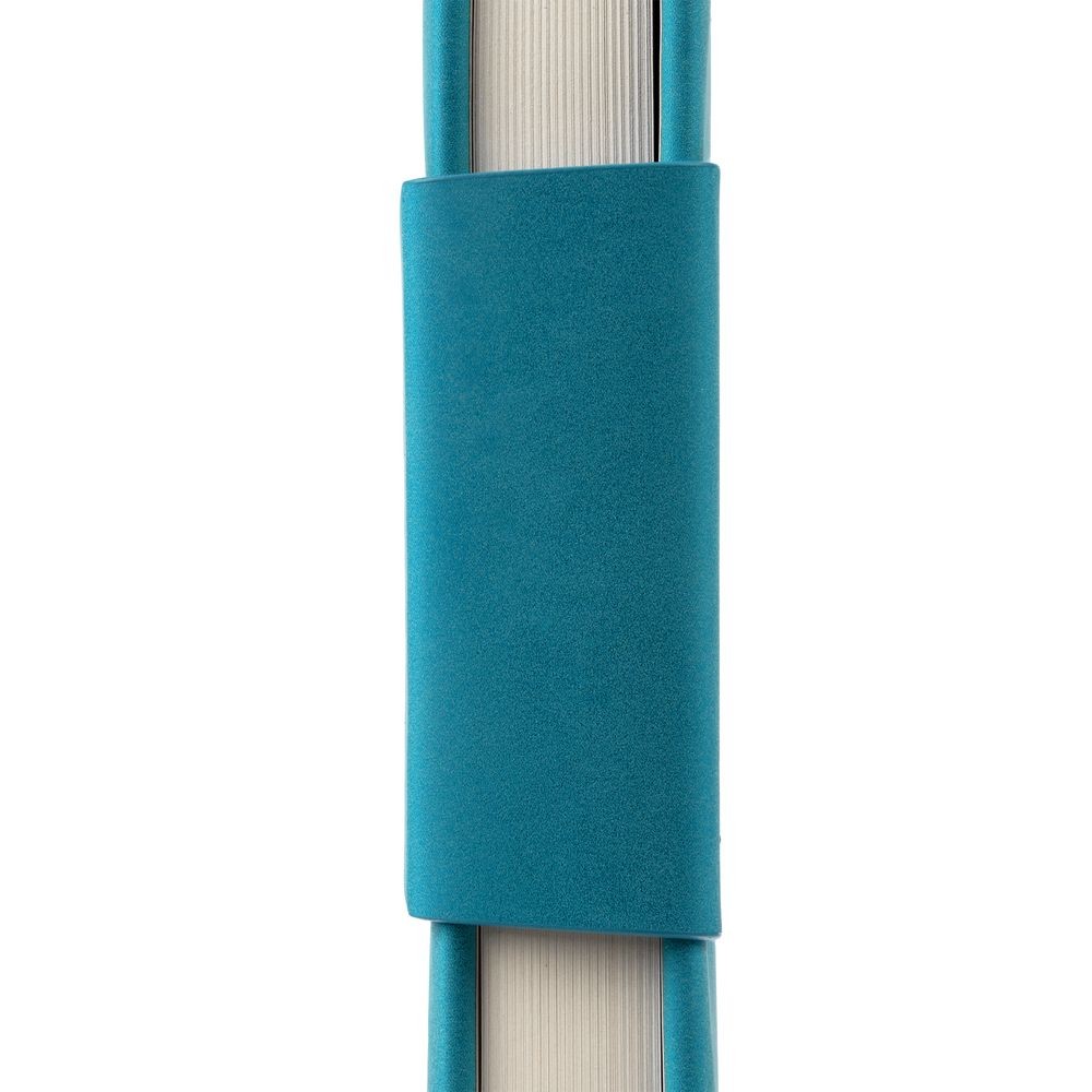 Ежедневник с твердой обложкой c поролоном, выполнен из материала Nubuck, морской волны, дополнен капталом и ляссе бирюзового цвета. Застежка — хлястик на магните.