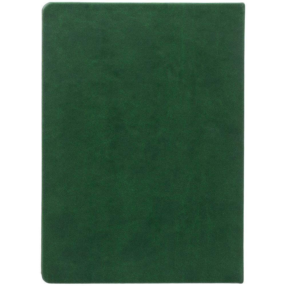 Ежедневник с твердой обложкой и тонированным обрезом. Выполнен из материала Latte, зеленый, дополнен ляссе в цвет обложки.