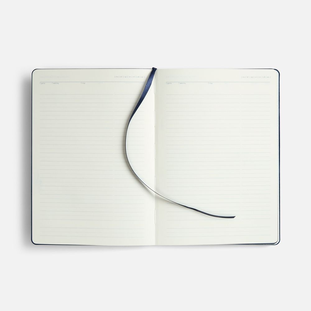 Ежедневник с гибкой обложкой, выполнен из материала Cowhide, дополнен ляссе в цвет обложки.