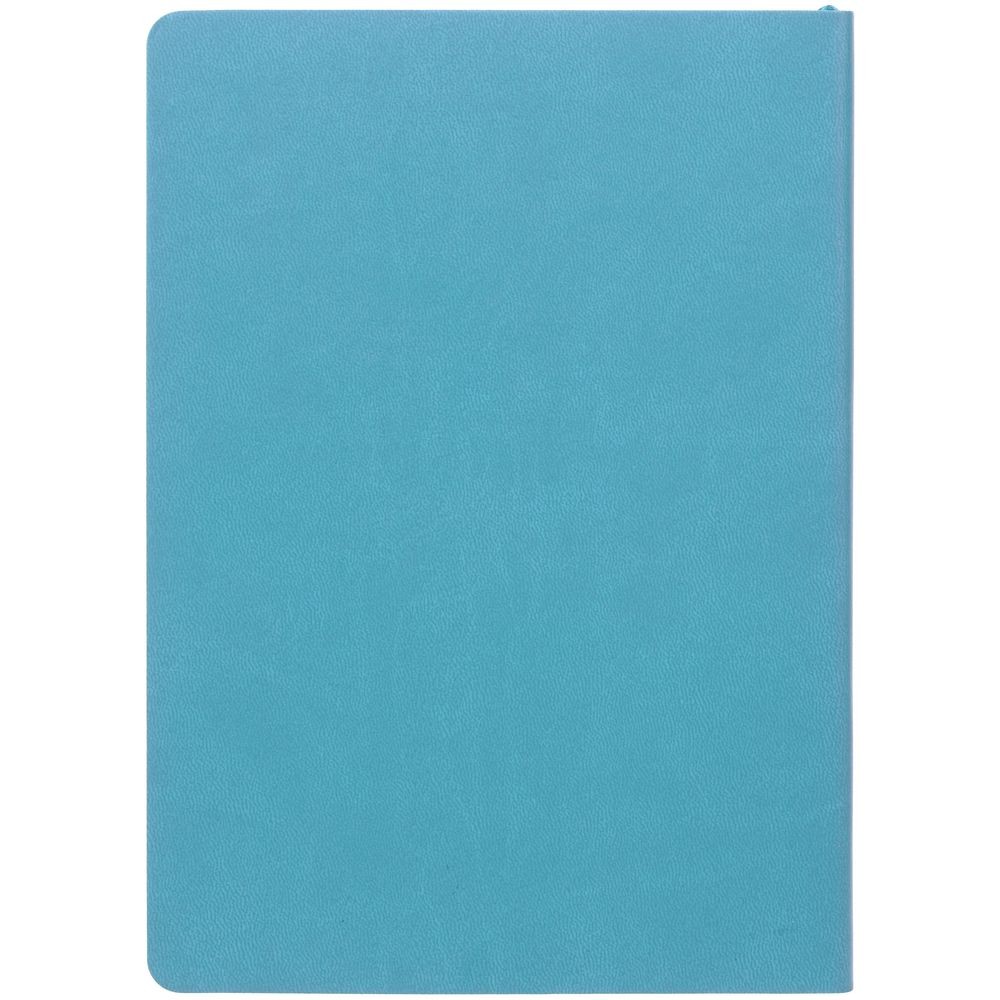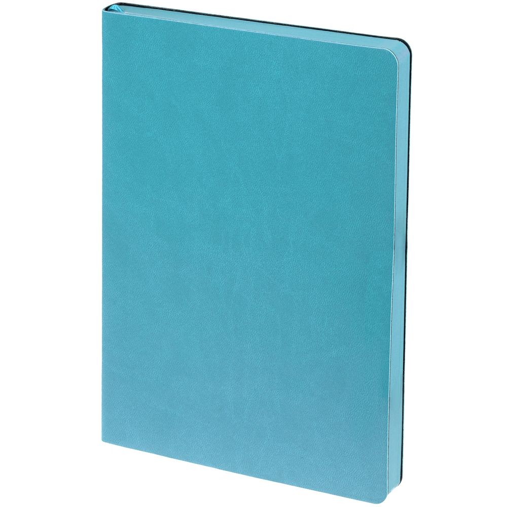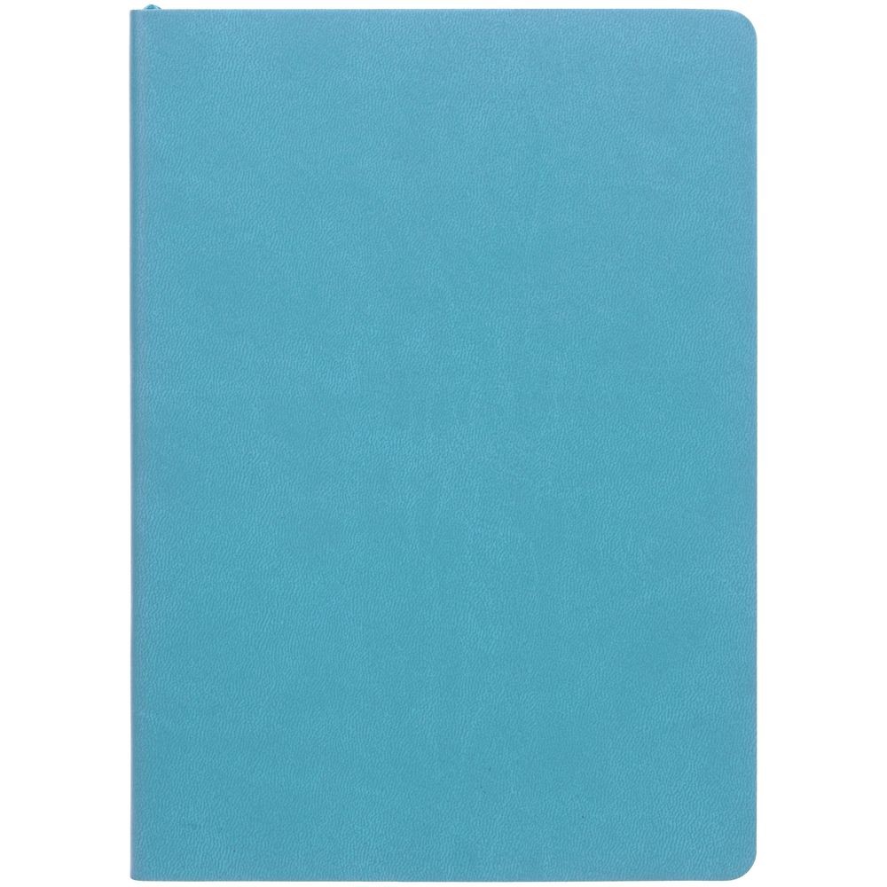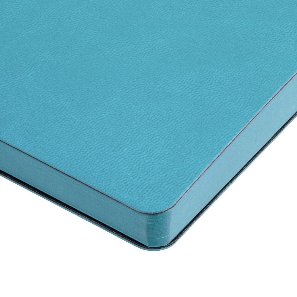 Ежедневник с гибкой обложкой, выполнен из материала Latte, голубой, дополнен ляссе в цвет обложки.