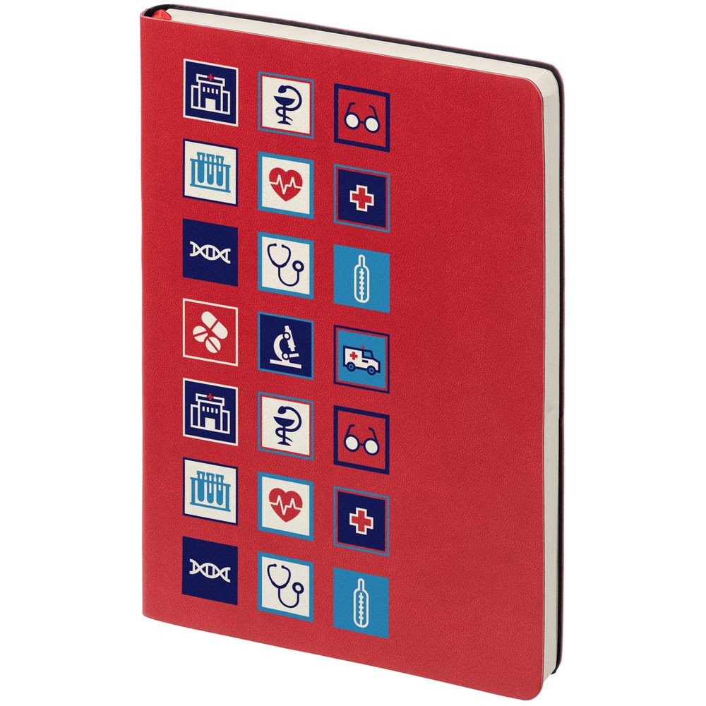 Расчет нанесенияЕжедневник с гибкой обложкой, выполнен из материала Latte, красный, дополнен ляссе в цвет обложки.
