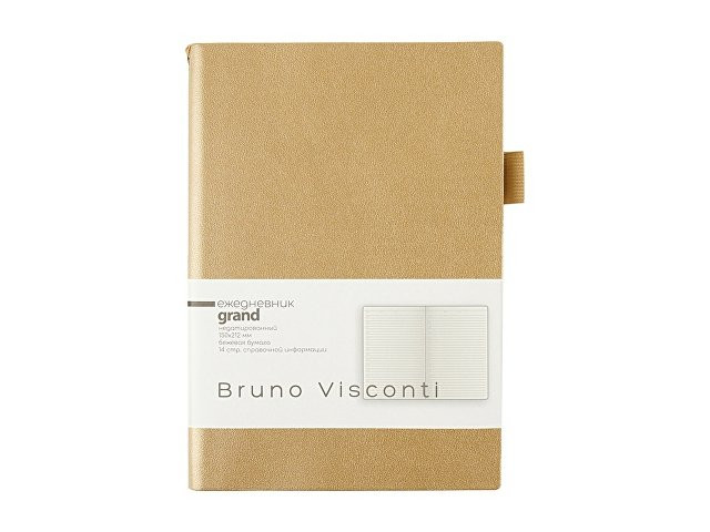 Мягкая, гибкая обложка с необычной фактурой, приятной на ощупь, петля под ручку, двойное ляссе, стандартный формат А5 — все это ежедневник Grand. А благодаря оригинальному способу фиксации ляссе на корешке ежедневник получил новое звучание. Такая «фишка» придется по вкусу всем, кто придает большое значение деталям. Недатированный блок изготовлен из бежевой бумаги плотностью 80 г/кв.м. Ежедневник имеет справочную информацию на 14 страницах.
