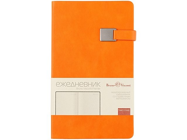 Недатированный ежедневник Premier формата А5 (125х208 мм) от Bruno Visconti - удобный и функциональный в эксплуатации. Твердую обложку из высококачественной искусственной кожи дополняет металлический хлястик на магните. Ляссе в цвет обложки позволяет быстро найти нужную страницу. Блок в 272 страницы произведен из бежевой бумаги плотностью 70 г/кв.м и имеет раздел справочной информации на 19 страницах. Для удобства навигации все углы блока перфорированы, имеют скруглённую форму.