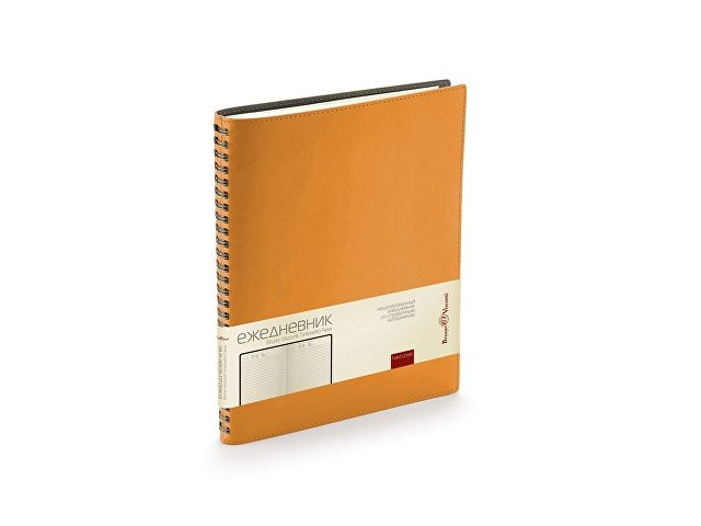 Недатированные деловой ежедневник «Tintoretto». Реальный шов по периметру в цвет материала Гибкий мягкий материал обложки прекрасно подходит для нанесения тиснения. Ежедневники выпускаются в формате В5, его размеры составляют 185 х 230 мм. Блок - 136 листов соединен полускрытым металлическим гребнем. Для блока используется высококачественная бежевая бумага, обладающая плотностью 70 грамм. В начале ежедневника расположены страницы со справочным материалом.