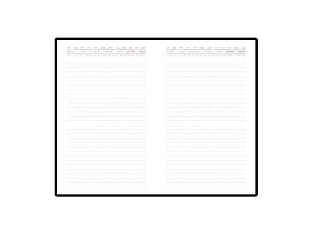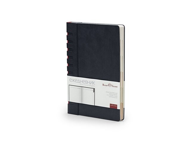 Оригинальная модель ежедневника с необычным накладным корешком с вырубкой и контрастной подложкой. Обложка готова к персонализации и выполнена из гибкого материала. Для блока в линейку используется великолепная бежевая бумага плотностью 70 г/м. Индексы на 12 месяцев позволяют эффективно планировать даже долгосрочные и отложенные дела. В ежедневнике размещено 7 страниц актуальной справочной информации: карта мира и часовых поясов, контакты международных аэропортов и их удаленность от ближайших городов, транспортная доступность, международные коды городов, телефонные коды городов России, Казахстана, Беларуси и Армении, а так же другие полезные материалы. Титульная страница отведена под личные данные.