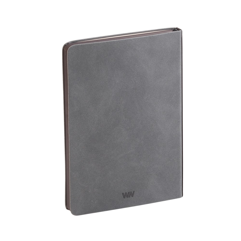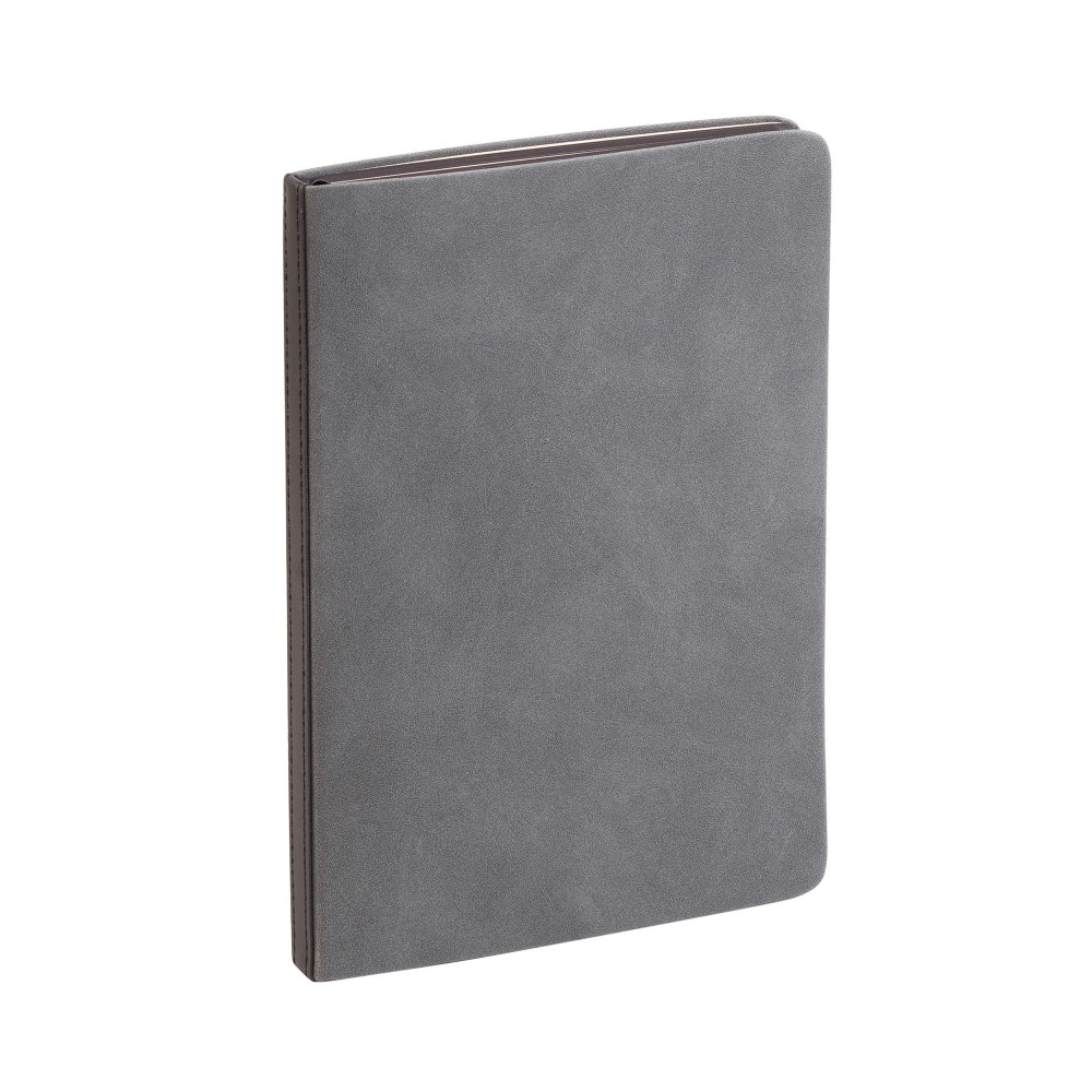 Ежедневник "Турин" в универсальном сером цвете с контрастной вставкой в корешке, придающей корпоративную идентичность. Стильный образ завершает цветной срез и ляссе в цвет вставки.