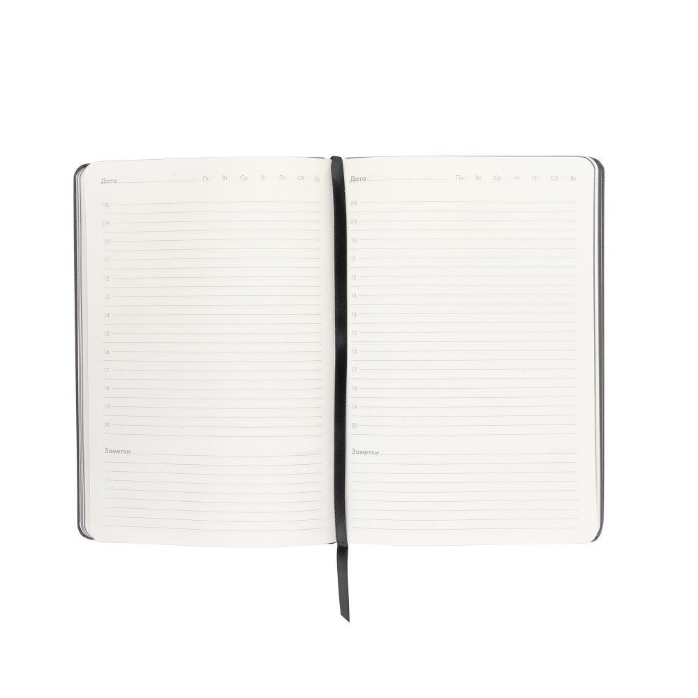 Основной материал напоминает велюр, с характерной тактильностью и гибкостью, такой ежедневник не хочется выпускать из рук.