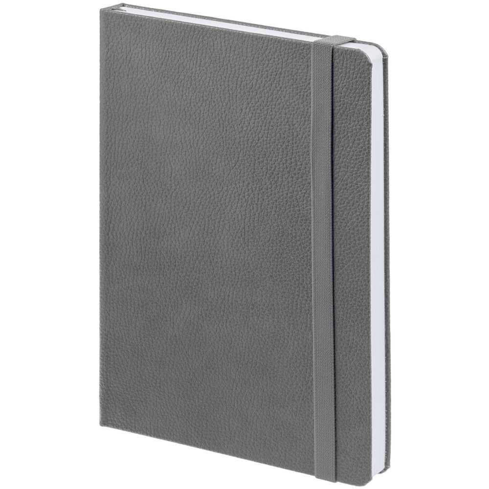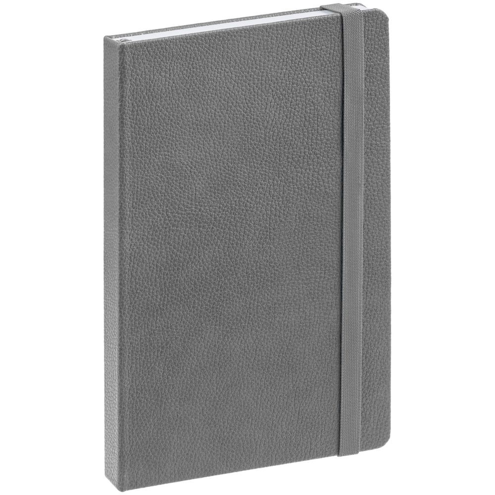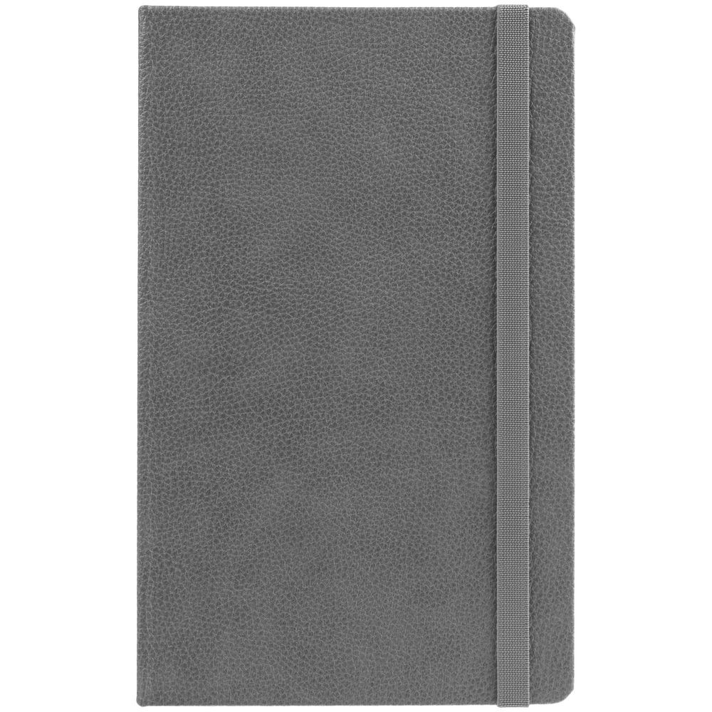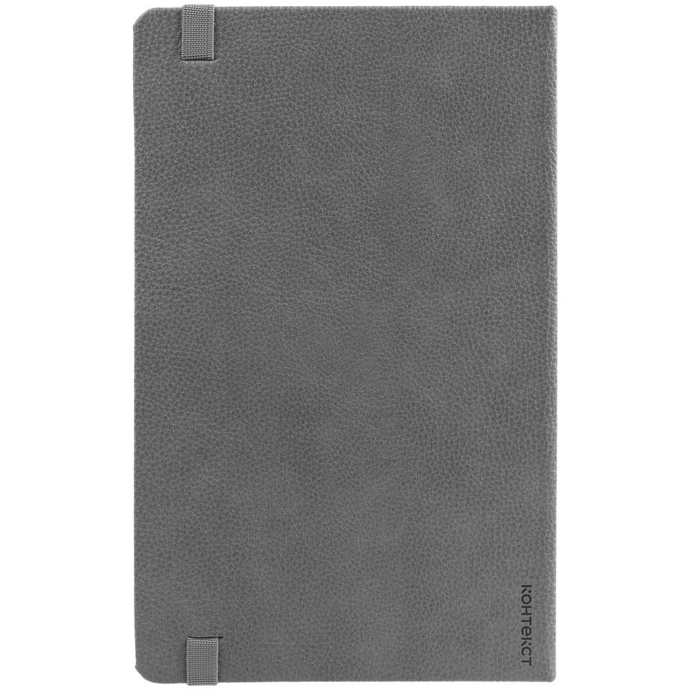 Ежедневник с твердой обложкой, выполнен из материала LaFite, серый СС, дополнен резинкой и ляссе в цвет обложки.