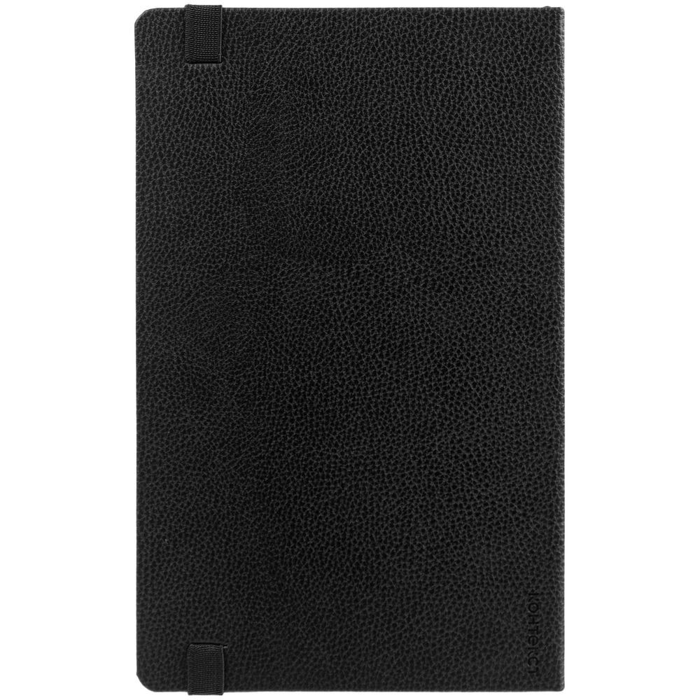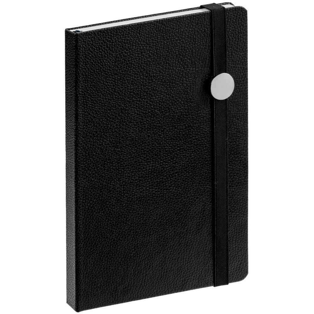 Ежедневник с твердой обложкой, выполнен из материала LaFite, черный АА, дополнен резинкой с металлическим круглым шильдом и ляссе в цвет обложки.