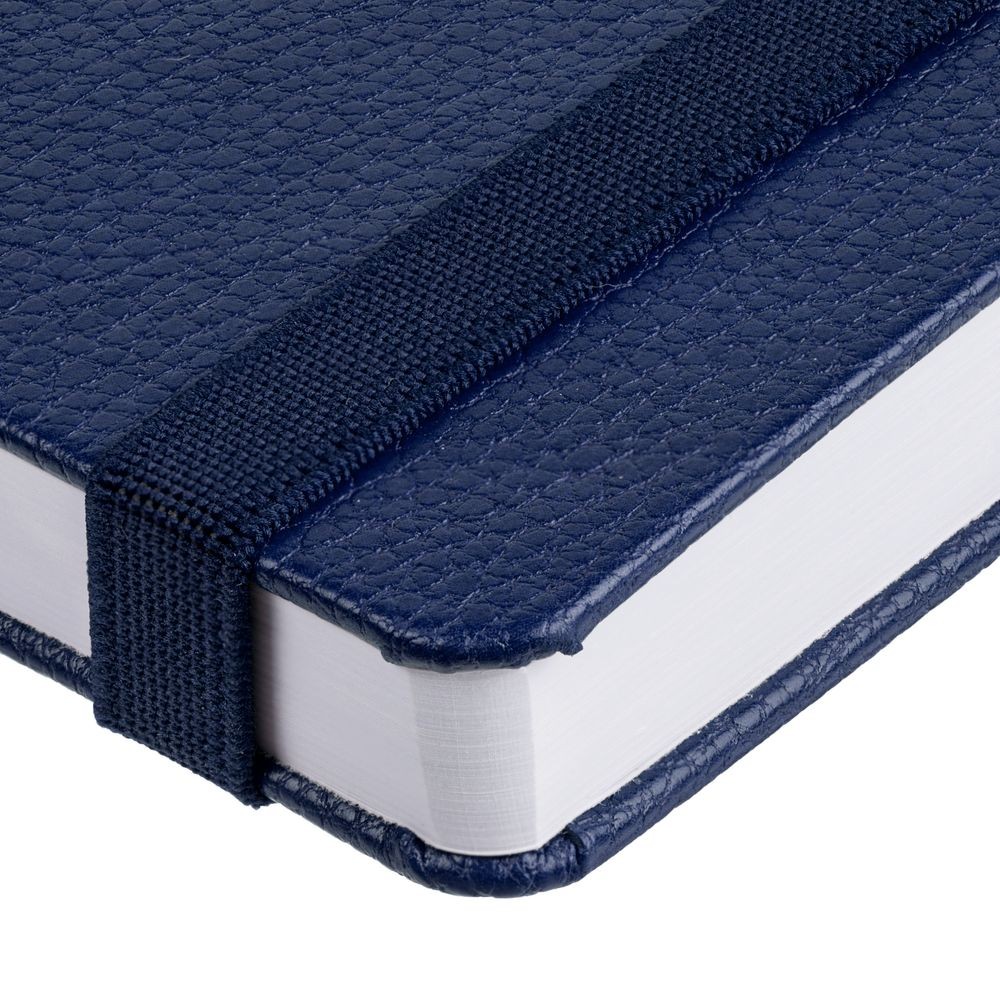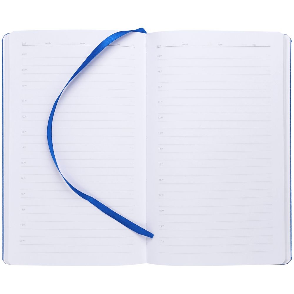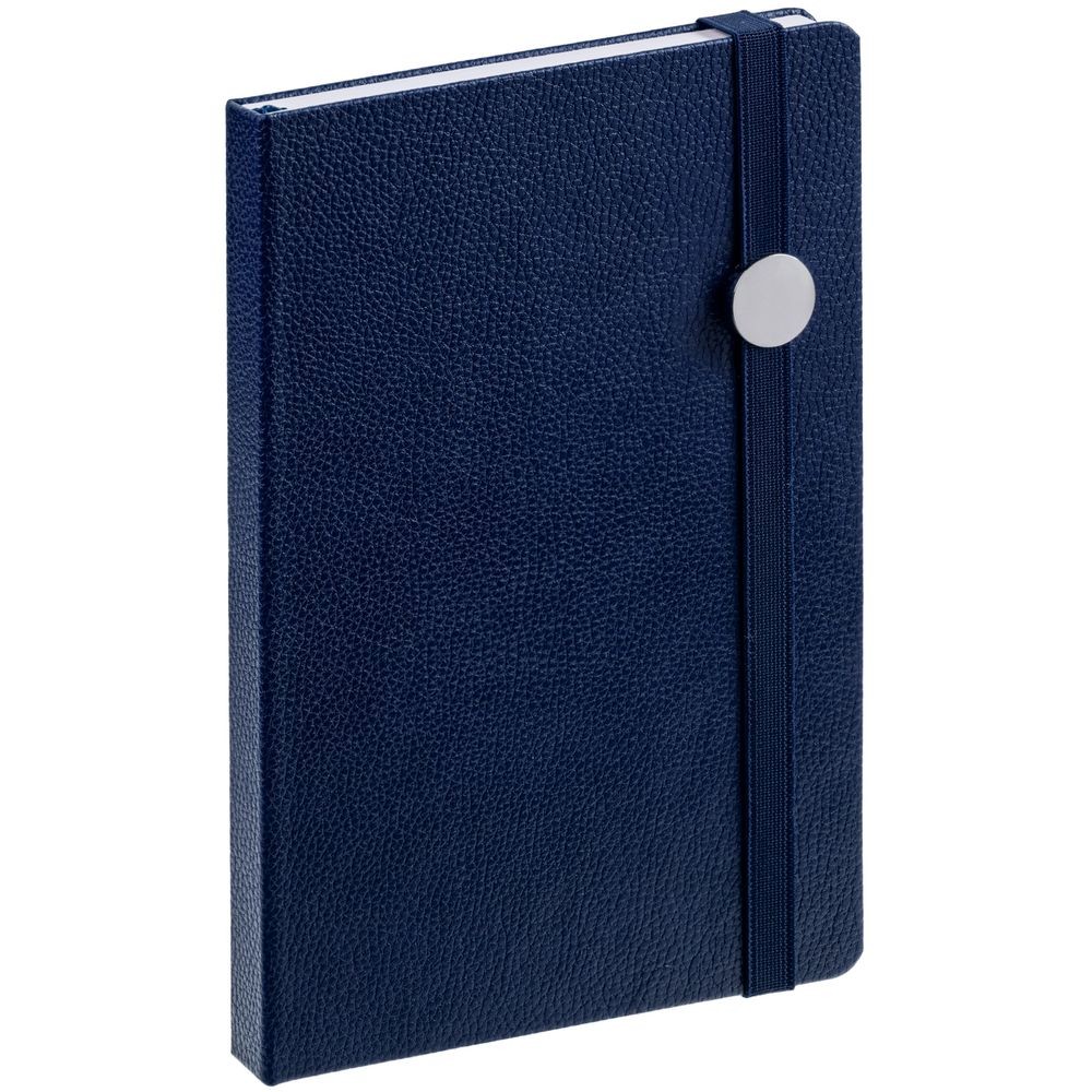Ежедневник с твердой обложкой, выполнен из материала LaFite, темно-синий ХХ,дополнен резинкой с металлическим круглым шильдом и ляссе в цвет обложки.