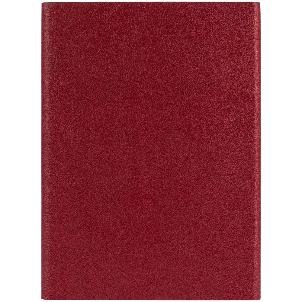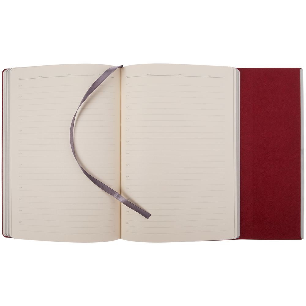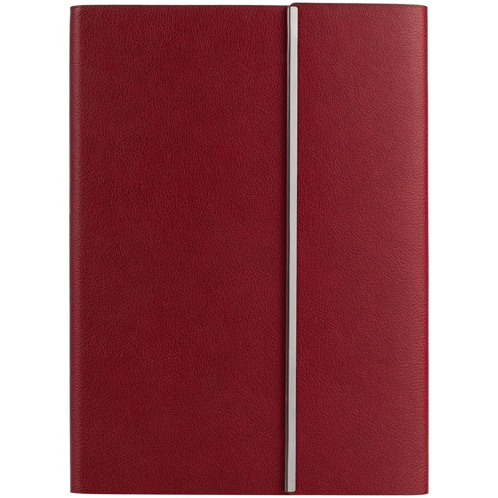 Ежедневник с гибкой обложкой, клапаном на магните и металлической отделкой клапана. Выполнен из материала Petrus, красный РР, дополнен серым ляссе.