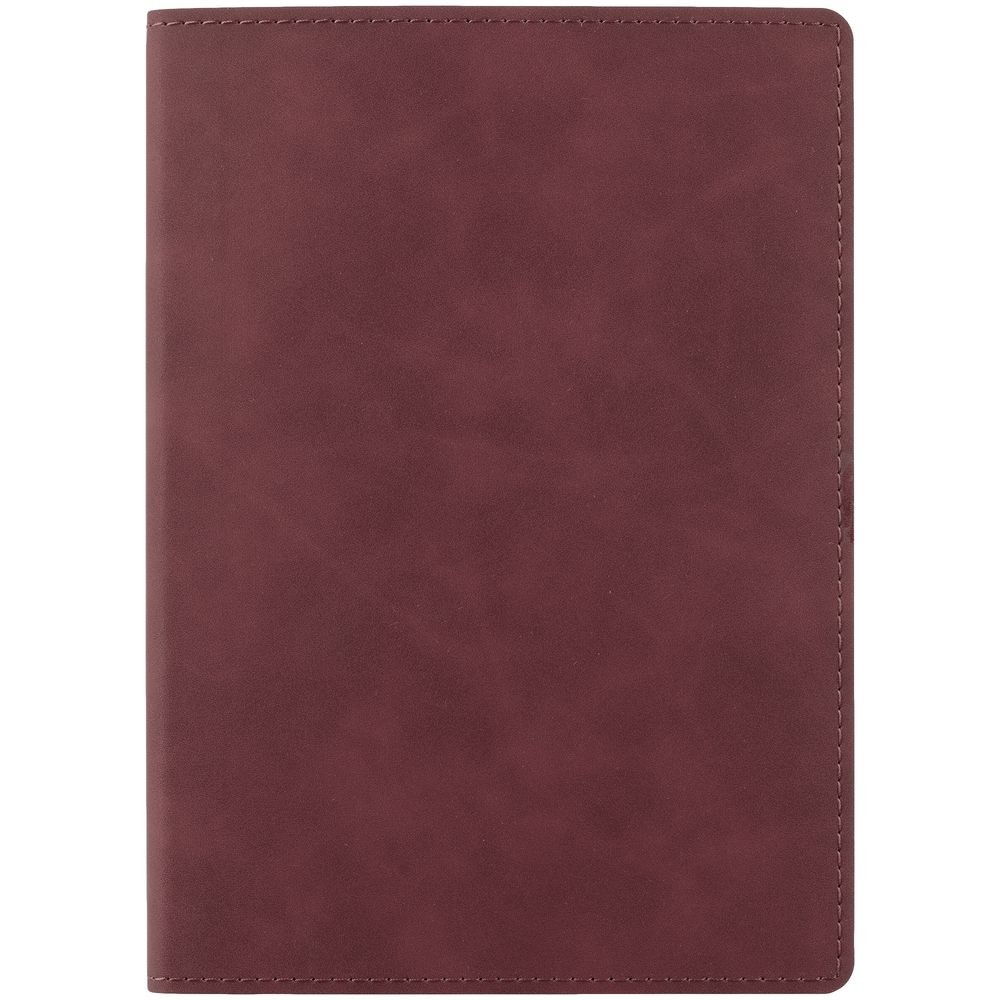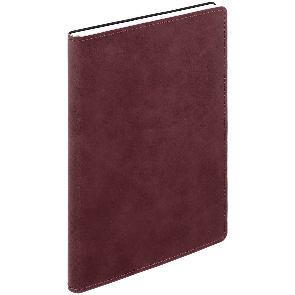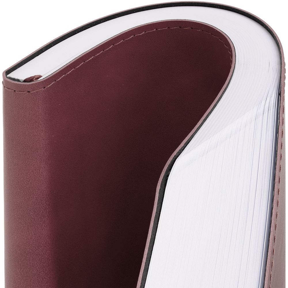 Ежедневник с гибкой обложкой, выполнен из материала Nubuck Touch, винный SS, дополнен ляссе в цвет обложки.