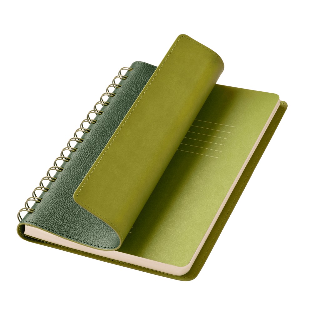 Внутренний блок с кремовыми страницами и срезом гармонично сочетается с нежным оттенком форзаца и нахзаца, повторяющим цвет внутреннего материала обложки. Надежная полускрытая пружина обеспечивает удобство использования и долговечность.