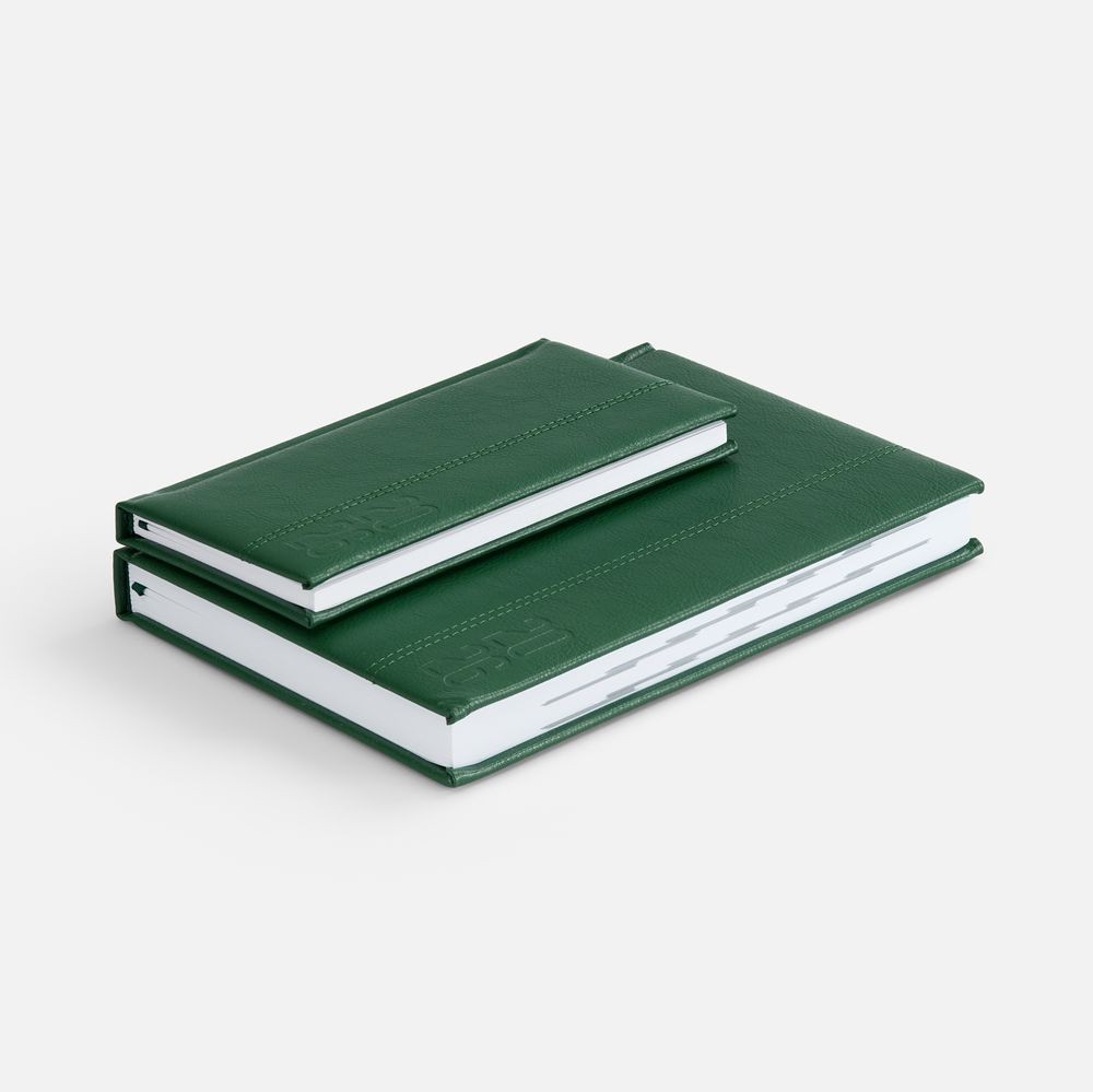 Еженедельник с твердой обложкой с поролоном из искусственной кожи, дополнен декоративной строчкой, капталом и ляссе в цвет.