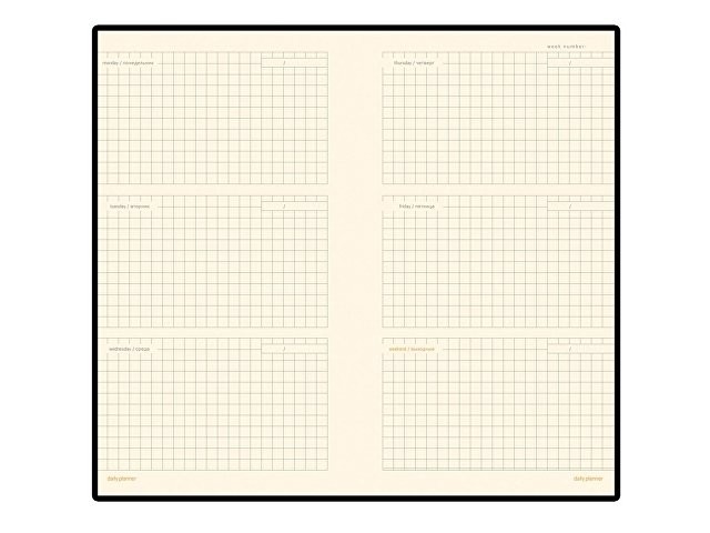 Удобный практичный недатированный еженедельник в мягкой обложке из прочного переплетного материала. Контрастная прострочка белыми нитками по периметру привлекает внимание к изящной форме обложки с закругленными уголками. Обложка украшена металлическим шильдиком. Линовка блока - клетка, с указанием дней недели. Карманный формат этого еженедельника позволяет эффективно вести записи на выездных совещаниях, переговорах и встречах. Готов к персонализации.