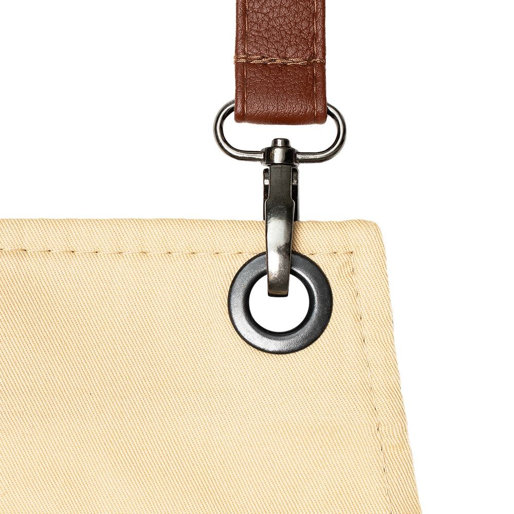 Материал: фартук - полиэстер 65%, хлопок 35%, плотность 240 г/м²; лямки - искусственная кожа; фурнитура - металл