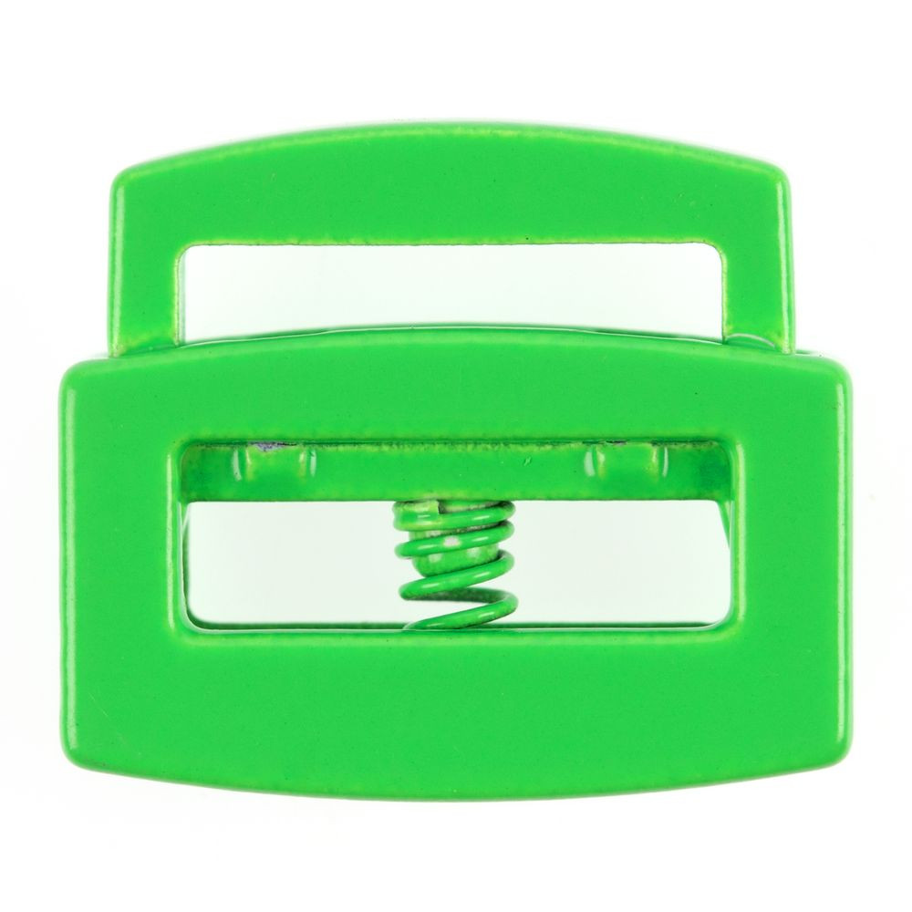 Для установки необходимо нажать на кнопку фиксатора и пропустить шнур через отверстие. Подходит для лент шириной до 1 см или для круглых шнуров и резинок диаметром до 0,5 см.