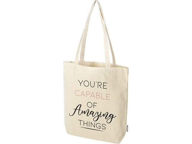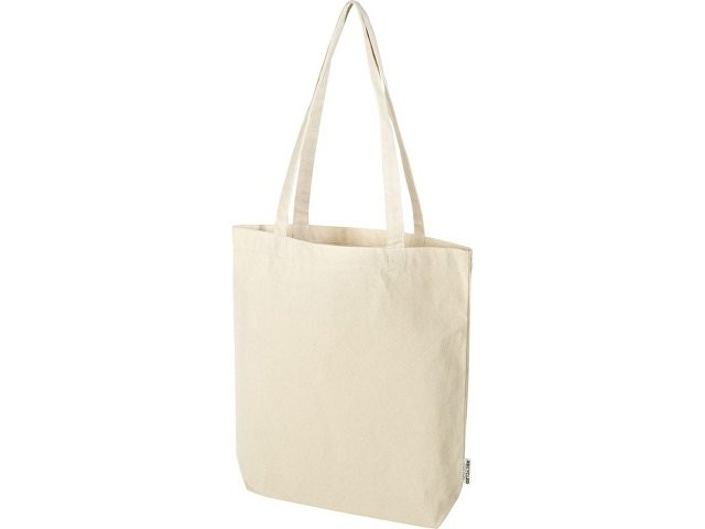 Эко-сумка Florida с широким дном, изготовленная из 100% переработанного хлопка, сертифицированного согласно GRS, плотностью 270 г/м², станет более ответственным и долговечным выбором для ваших повседневных нужд. Благодаря широкому дну в нем предусмотрено дополнительное место для самых необходимых вещей на любой случай — от похода по магазинам до повседневной прогулки. Длина ручки: 30 см. Объем: 10 литр. Хлопок.