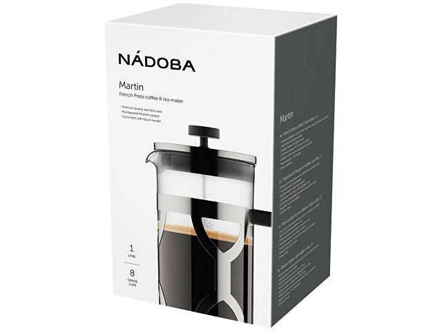Френч-прессы серии MARTIN имеют колбу, выполненную из жаропрочного боросиликатного стекла. Прочный подстаканник из нержавеющей стали обеспечивает дополнительную термоизоляцию и предохраняет колбу от повреждений. Многослойная система фильтрации френч-прессов выполнена из высококачественной нержавеющей стали 18/10. Удобная ручка не нагревается и не выскальзывает из рук. Разборная конструкция изделий и системы фильтрации облегчают легкий и качественный уход. В комплекте предусмотрена мерная ложка 7г для точной дозировки продуктов. В серию входят френч-прессы объёмом 1, 0,6 и 0,35 л. Гарантия на френч-прессы серии MARTIN 3 года.