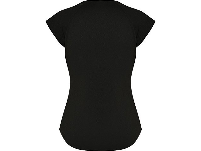 Спортивная женская футболка с коротким рукавом реглан. Вырез горловины V. Полотно из полиэстера на ощупь напоминающее хлопок. Приталенный силуэт.