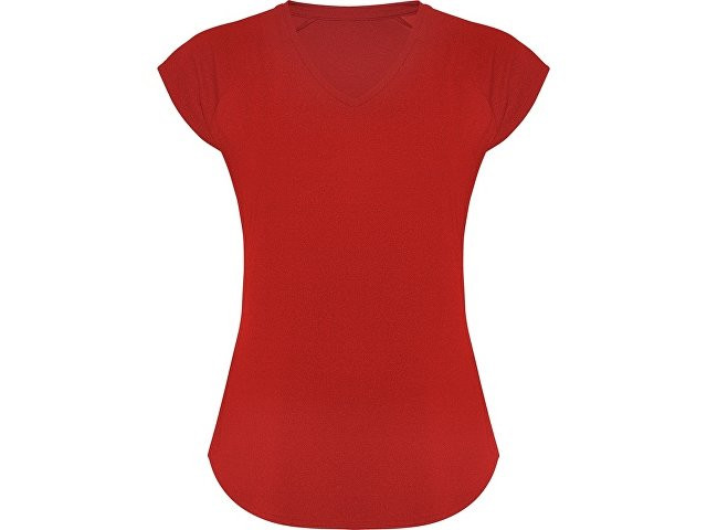 Расчет нанесенияСпортивная женская футболка с коротким рукавом реглан. Вырез горловины V. Полотно из полиэстера на ощупь напоминающее хлопок. Приталенный силуэт.