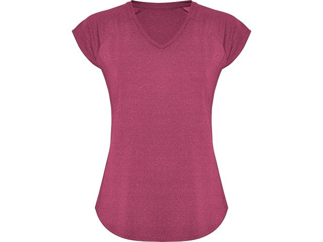 Спортивная женская футболка с коротким рукавом реглан. Вырез горловины V. Полотно из полиэстера на ощупь напоминающее хлопок. Приталенный силуэт.