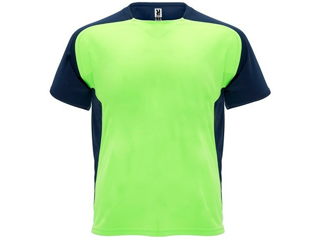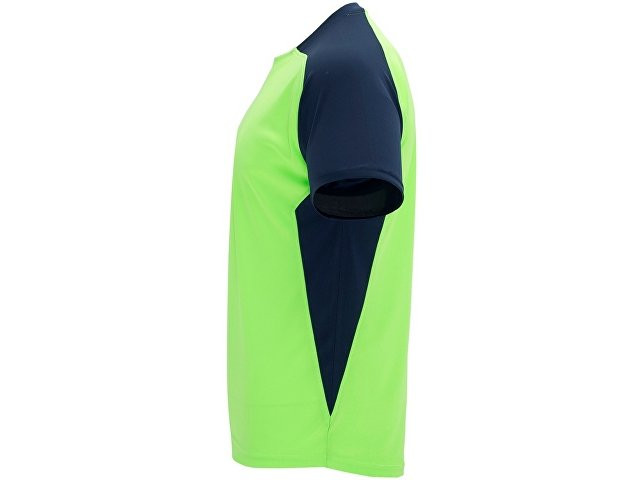 Спортивная футболка с коротким рукавом реглан. Круглый вырез горловины. Контрастные рукава и боковые вставки.