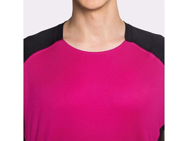 Спортивная футболка с коротким рукавом реглан. Круглый вырез горловины. Контрастные рукава и боковые вставки.
