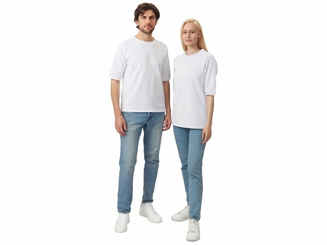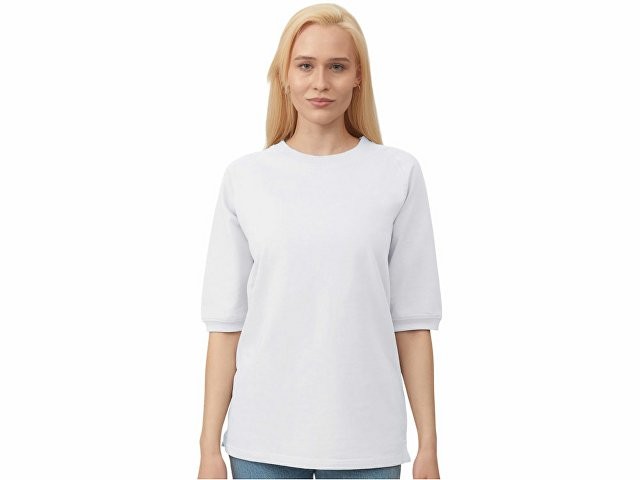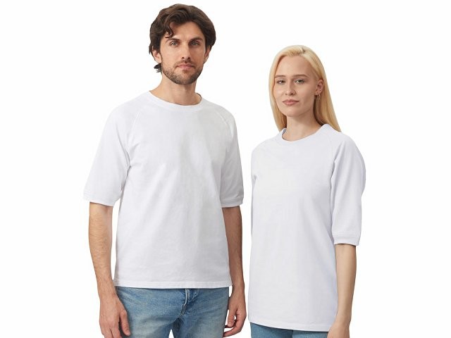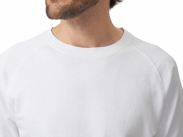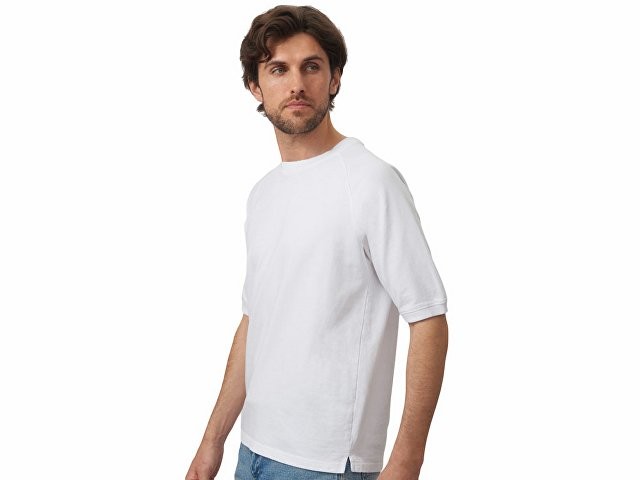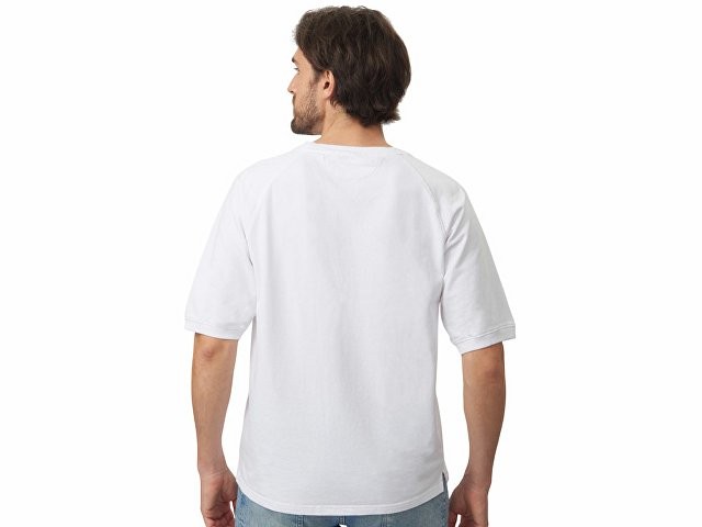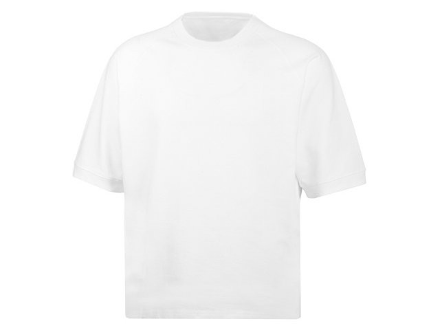 Футболка выполнена из хлопкового френч терри с петельками на изнаночной стороне. Горловина обработана рибом 2х2 и дополнительно усилена тесьмой-елочкой с внутренней стороны спинки и дополнена кокеткой по спинке для нанесения логотипа клиента. Рукав реглан продублирован рибом по низу. Разрезы в боковых швах. Гладкая поверхность полотна позволяет идеально нанести изображение. Футболка комфортного силуэта. - кокетка на внутренней стороне спинки для нанесения - комфортный силуэт - мягкое и качественное полотно френч терри