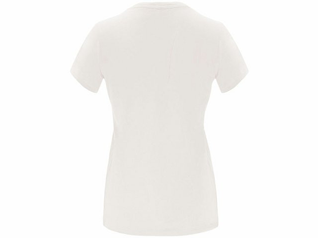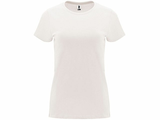 Женская приталенная футболка. Круглый вырез горловины обработан рибом 1х1. Шов горловины укреплен тесьмой.
