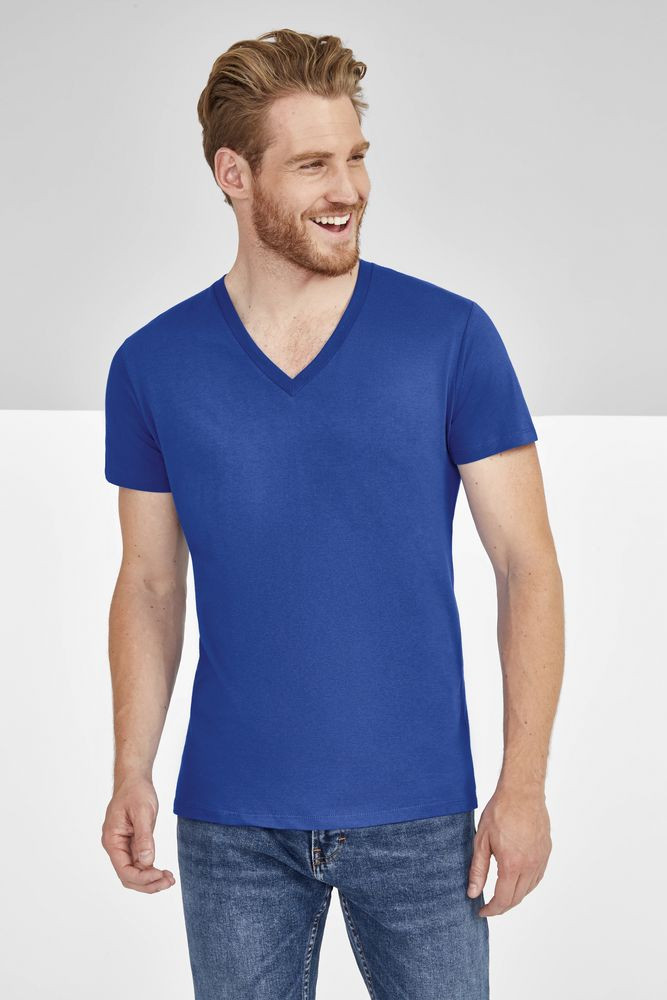 Модная мужская футболка с глубоким V-образным вырезом, отделанным резинкой 1*1, подойдет как для промо-акций, так и в качестве корпоративной униформы. Полугребенной 100% хлопок, двойная прострочка на рукавах и по низу изделия, укрепляющая тесьма по вороту.
