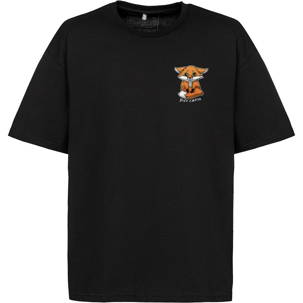 Принт с информацией о бренде и инструкцией по уходу за изделием на изнаночной стороне футболки.
