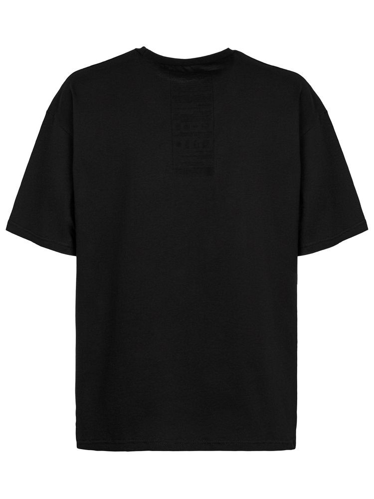 Принт с информацией о бренде и инструкцией по уходу за изделием на изнаночной стороне футболки.