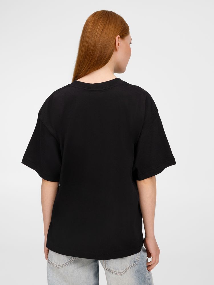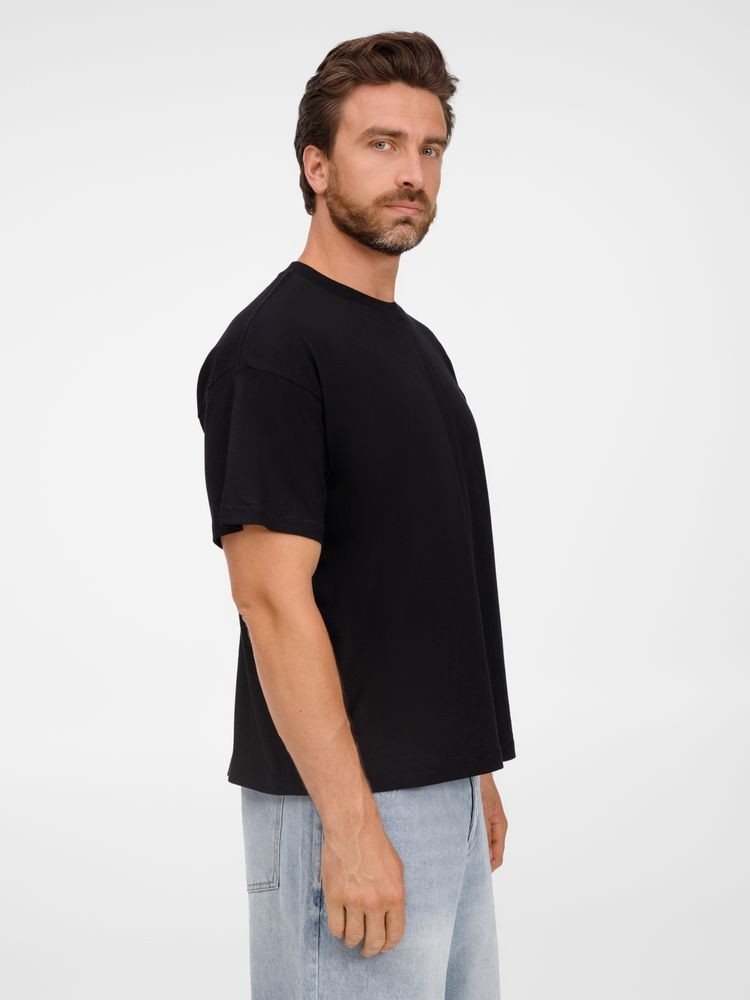 Укрепляющая тесьма по вороту. Усиленные плечевые швы. Круглый вырез отделан резинкой.